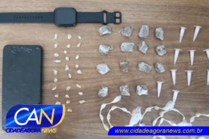 Segundo a Polícia Militar, os agentes realizavam rondas quando avistaram o suspeito em uma bicicleta. Ao perceber a aproximação da viatura, ele tentou fugir. A perseguição seguiu até a Rua São Sebastião, onde o homem entrou em um estabelecimento comercial e arremessou o celular ao chão, danificando o aparelho.